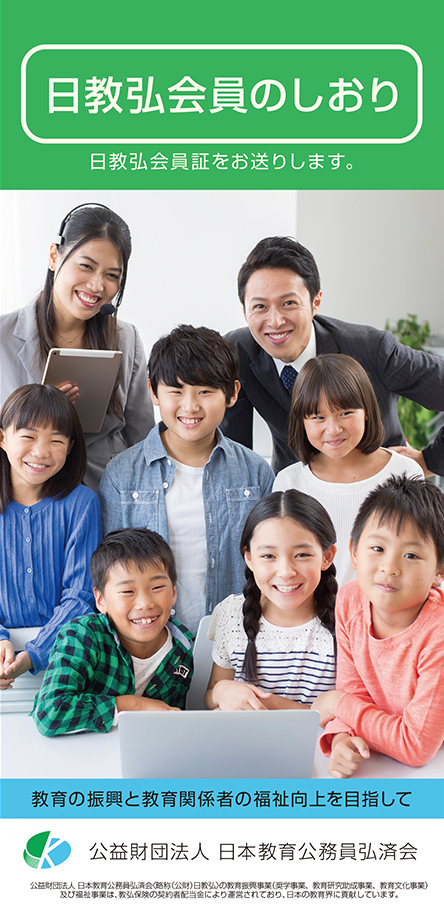 つきましては、意思確認書にて日教弘会員の継続をご希望された皆様に「日教弘クラブオフ」の全国共通サービスの利用証が付帯された新しい「日教弘会員証」をお送りさせていただきます。同封の「日教弘会員のしおり」をご一読のうえ、ご活用いただければ幸いでございます。